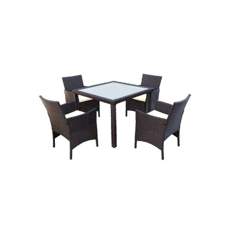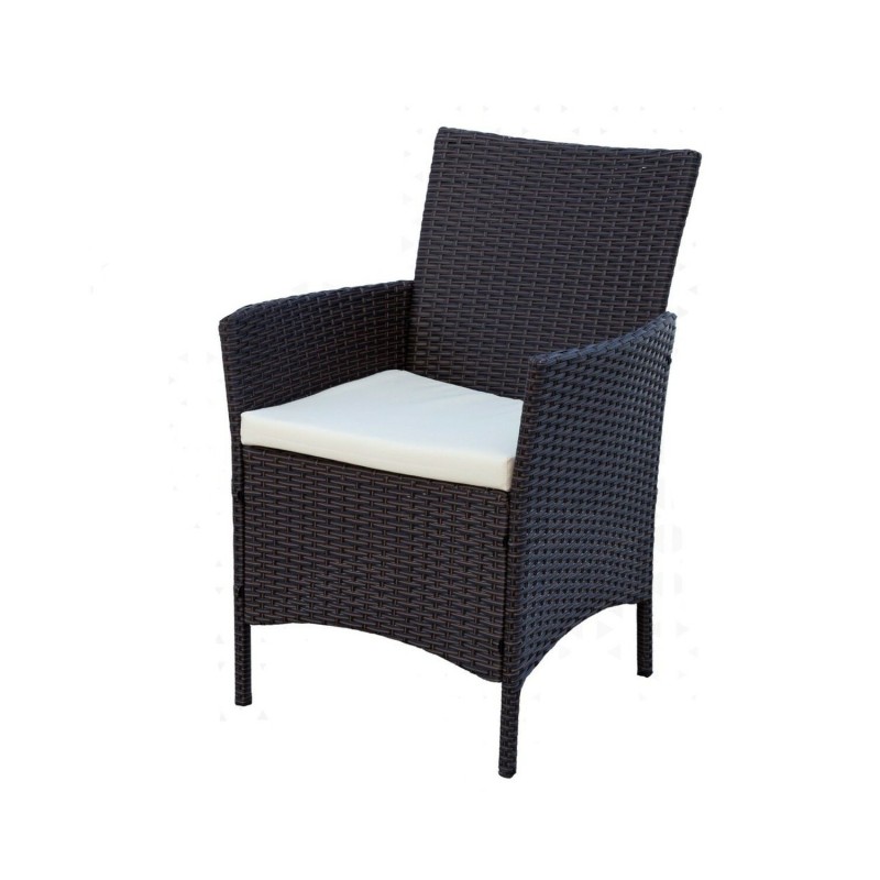 Chaque fauteuil est équipé d'un coussin d'assise rembourré de couleur crème, et la table dispose d'un plateau en verre pour un nettoyage facile.