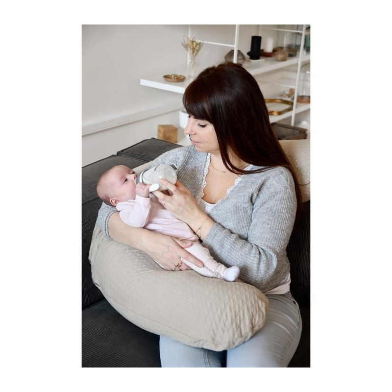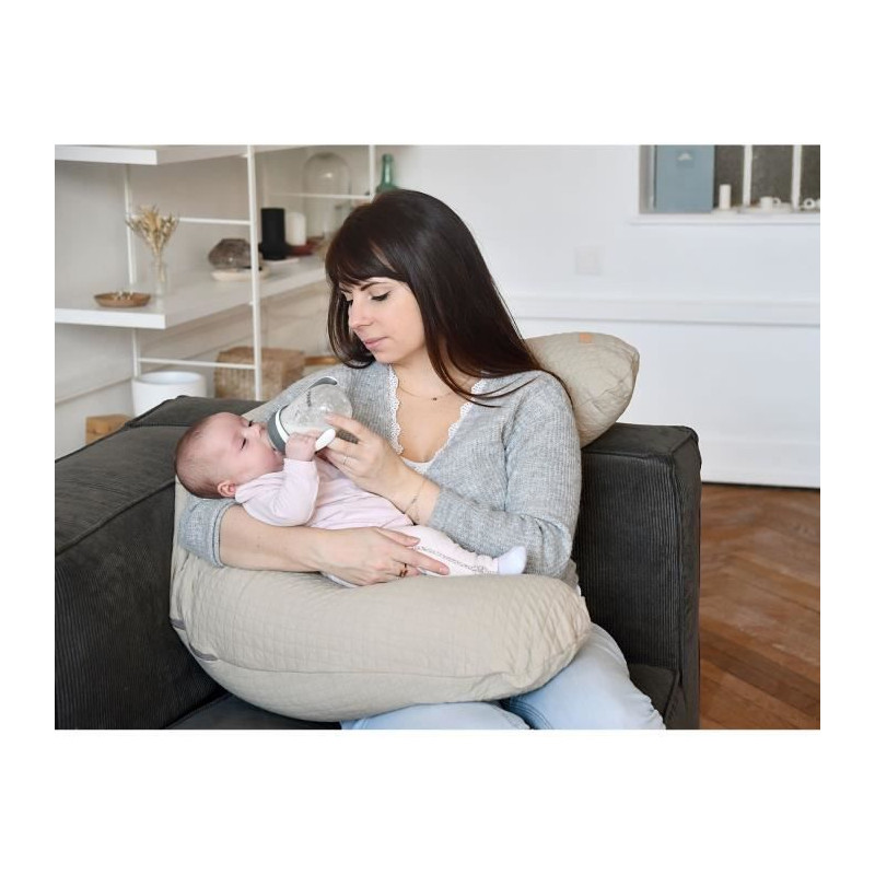 Confortable et multifonctions, accompagne maman dans le sommeil et la détente. Facilite l'allaitement mais aussi le biberon. Grande taille. Housse fleur de coton : douceur naturelle. Tissu haut de gamme déhoussable par zip Micro-perles ultra légeres, non toxiques et inodores. Entretien : housse et coussin en machine a 30° dans un filet ou un sac de lavage.