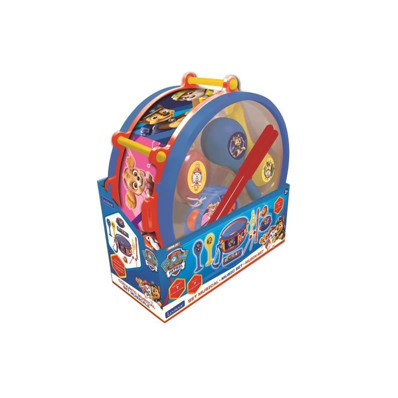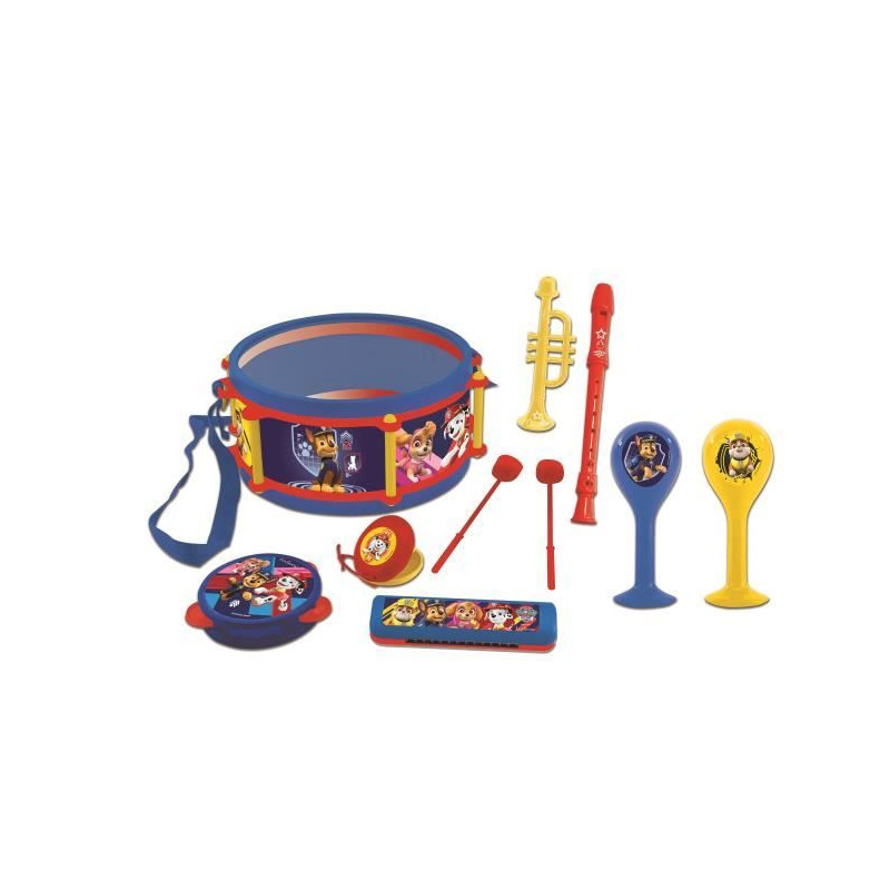LEXIBOOK - PAT PATROUILLE - Set de 7 Instruments de Musique - Tambour, Maracas, Castagnette, Harmonica, Flûte, Trompette & Tambourin - Pratique : tous les autres instruments se range a l'intérieur du grand tambourin afin de pouvoir emmener ton set musical partout avec toi