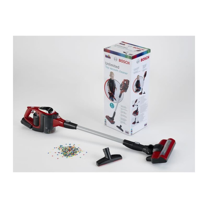 Cet aspirateur BOSCH est une reproduction fidele du modele original. Il est équipé d'un compartiment a poussieres transparent, d'un tube qui permet de passer rapidement du mode "aspirateur-balai" a celui d'"aspirateur de table", d'une grande brosse orientable, etc.